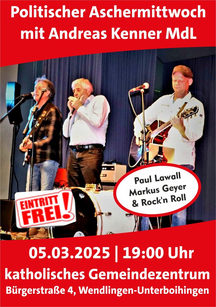 Unser SPD Landtagsabgeordneter lädt ein: "Aschermittwoch steht wieder vor der Tür und es ist mir ein besonderes Vergnügen Sie gemeinsam mit der Wendlinger SPD zum einzigen politischen Aschermittwoch in der Region nach Unterboihingen einladen zu dürfen."