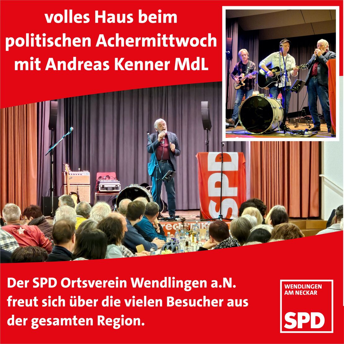 So viele Besucher wie noch nie fanden den Weg zu der Veranstaltung, was für Andreas Kenner und den SPD-Ortsverein einen großartigen Erfolg darstellt. Besonders erfreulich war die Anwesenheit von Bürgermeister Steffen Weigel sowie Gemeinderätinnen und Gemeinderäten aller Wendlinger Fraktionen. Auch zahlreiche Gäste aus den umliegenden Gemeinden und Kirchheim bereicherten die Veranstaltung.