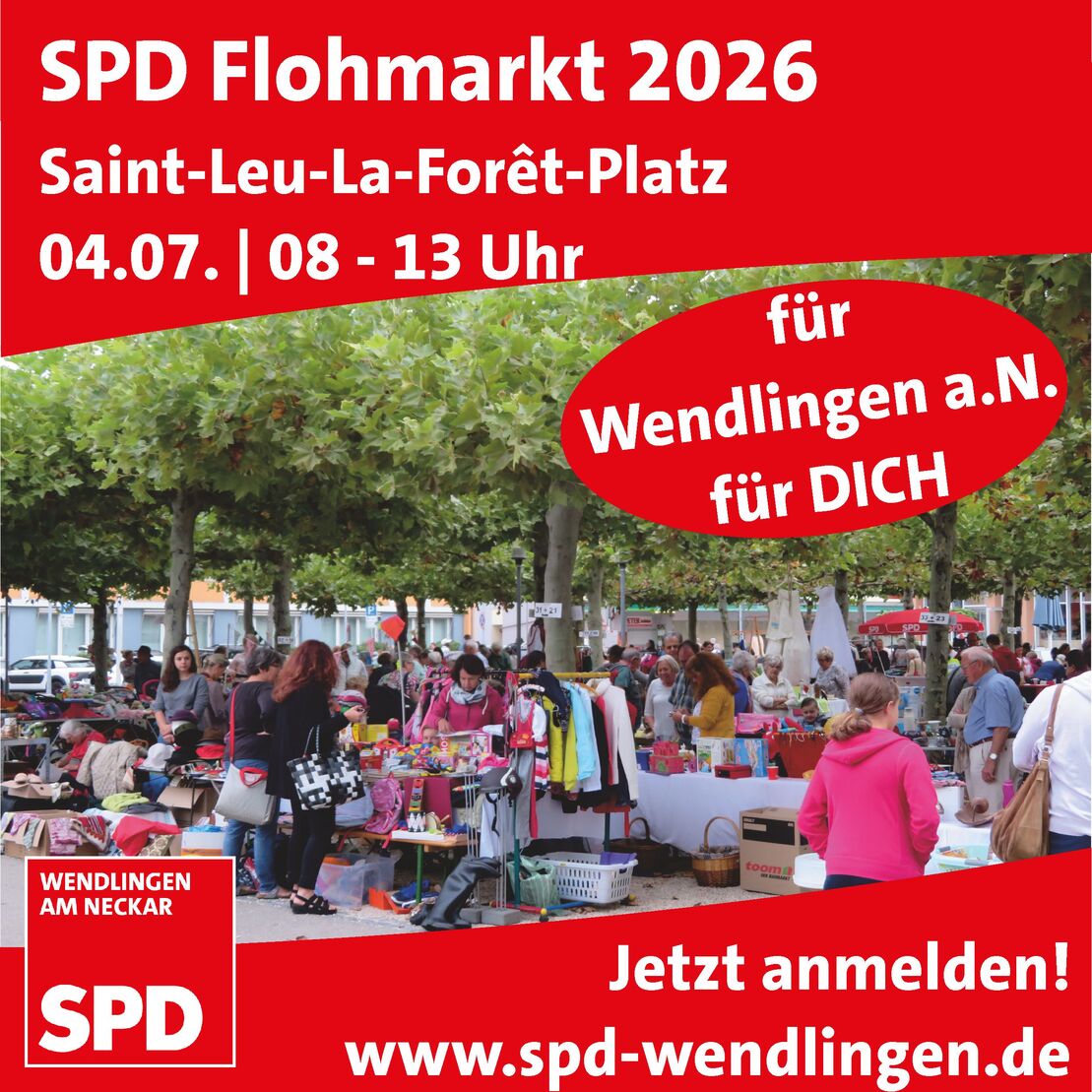 Der SPD-Flohmarkt findet dieses Jahr am Samstag, den 4.7. von 08 – 13 Uhr auf dem Saint-Leu-la-Forêt-Platz in Wendlingen am Neckar statt. Das Anmeldeformular können Sie hier herunterladen. Eventuell hilft Ihnen ein Blick auf den Standplan bei der Platzauswahl.